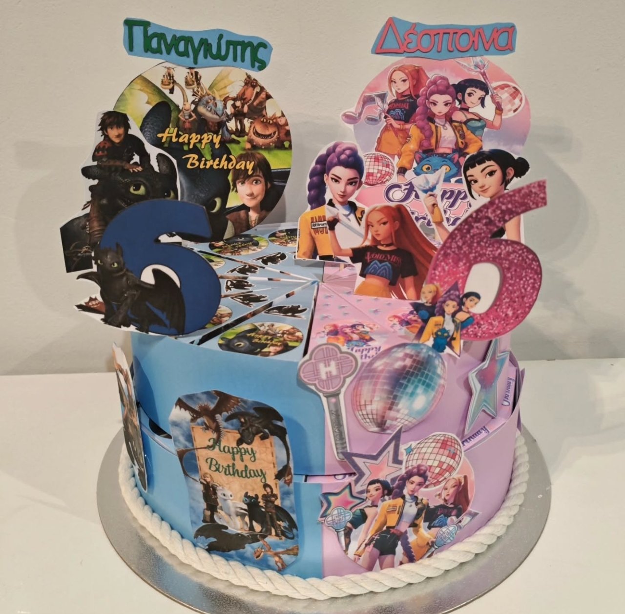 Χειροποίητη χάρτινη τούρτα δυο θεμάτων ιδανική για δίδυμα αδέρφια