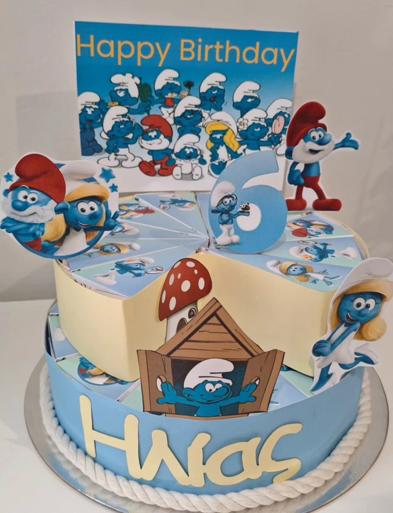 Χειροποίητη χάρτινη τούρτα “Στρουμφάκια” (Smurfs)
