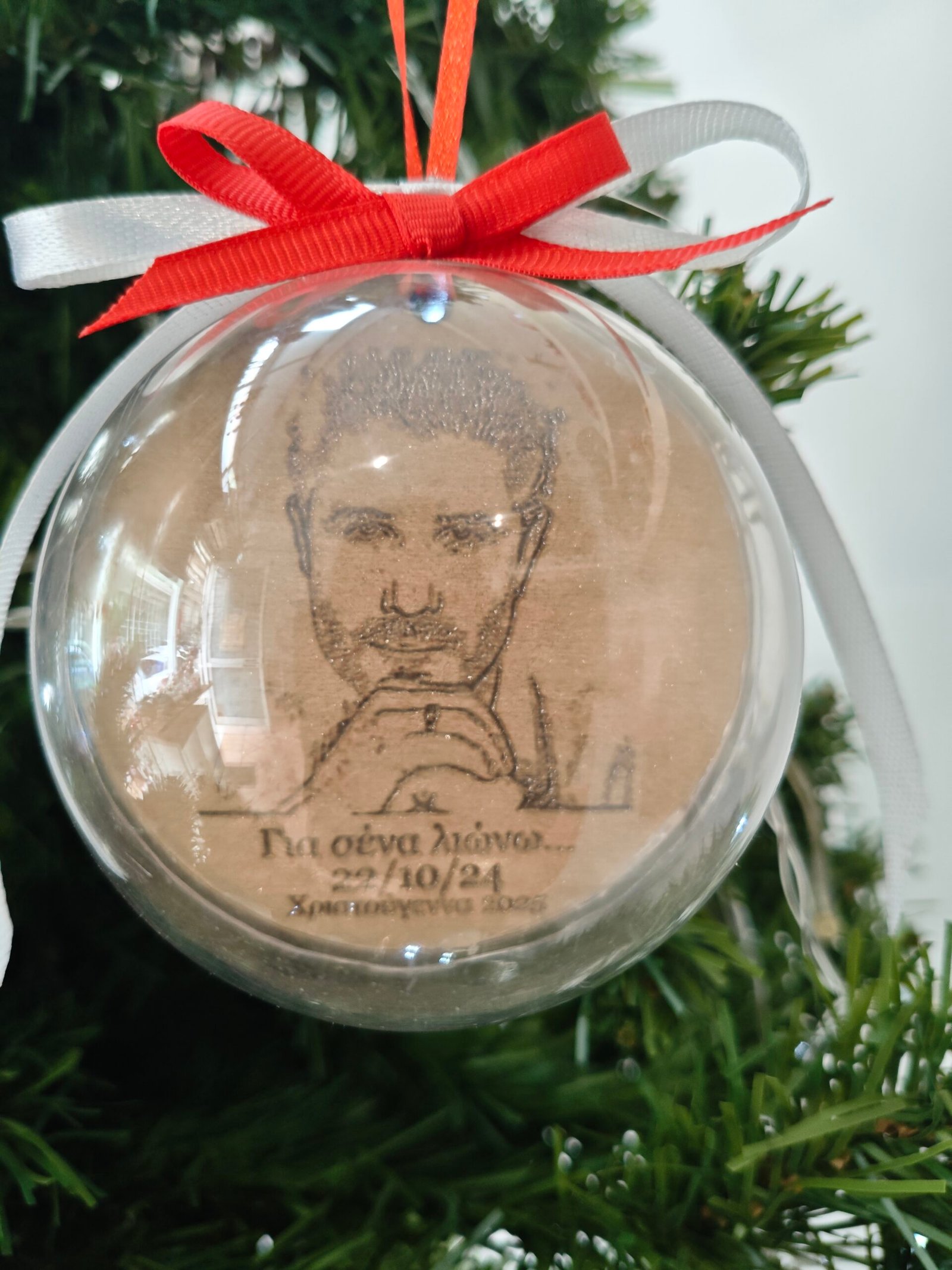 Χριστουγεννιάτικο στολίδι με μισή μπάλα plexiglass με την εικόνα της επιλογής σας και το κείμενο της επιλογής σας