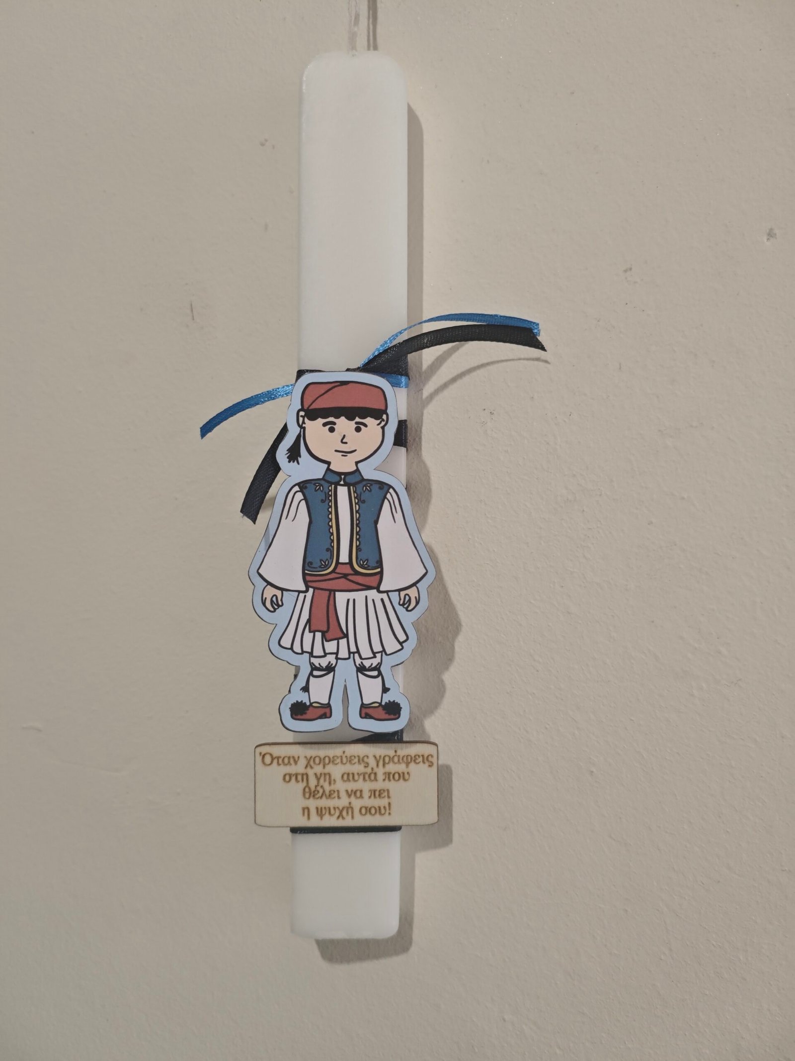 Λαμπάδα “Τσολιάς” με μαγνητάκι και κείμενο της επιλογής σας