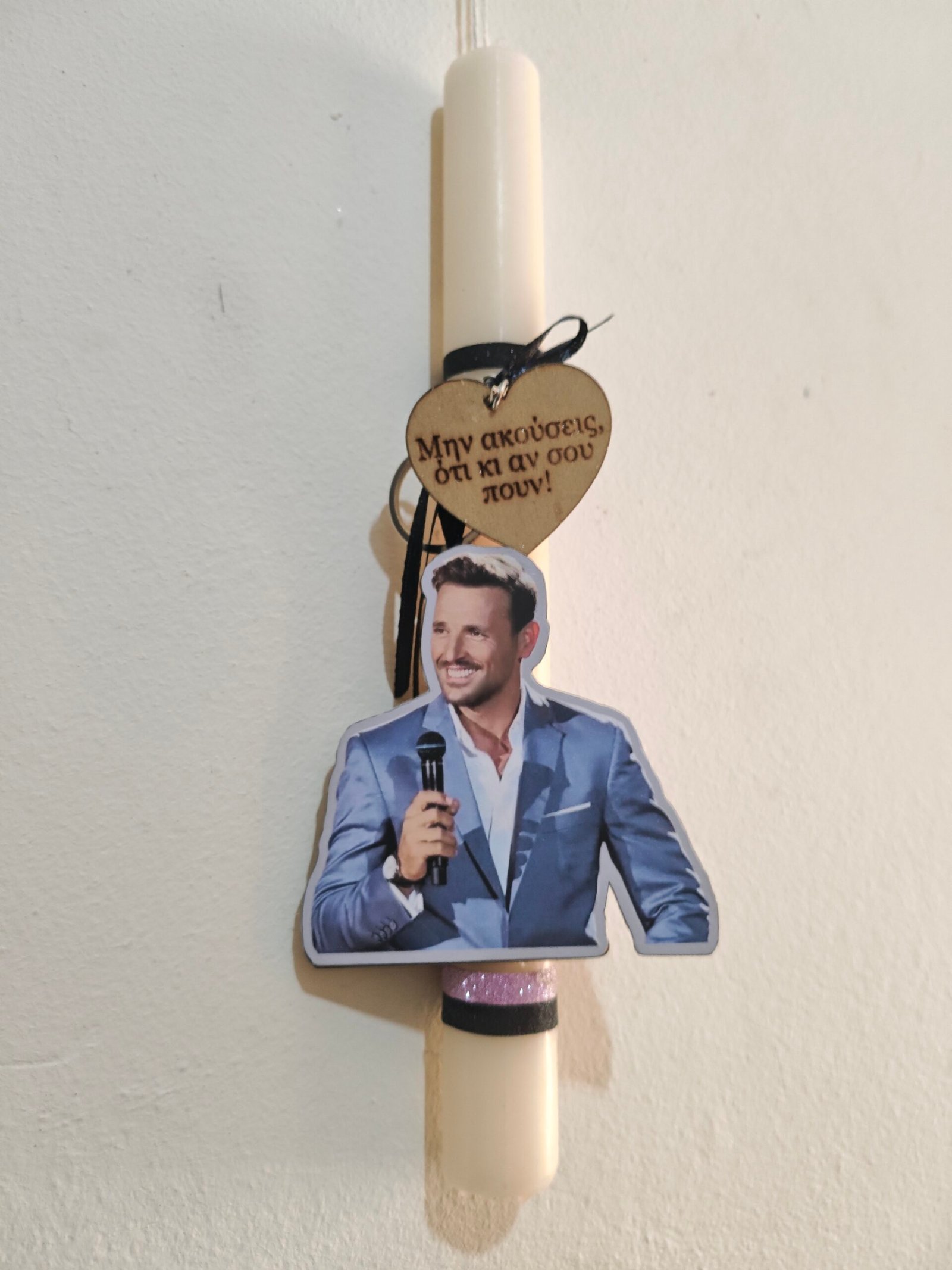 Λαμπάδα με ξύλινο μπρελόκ με στίχο της επιλογής σας